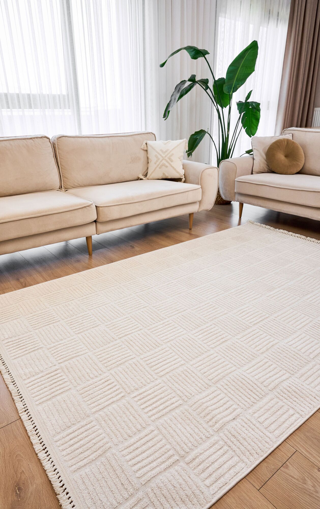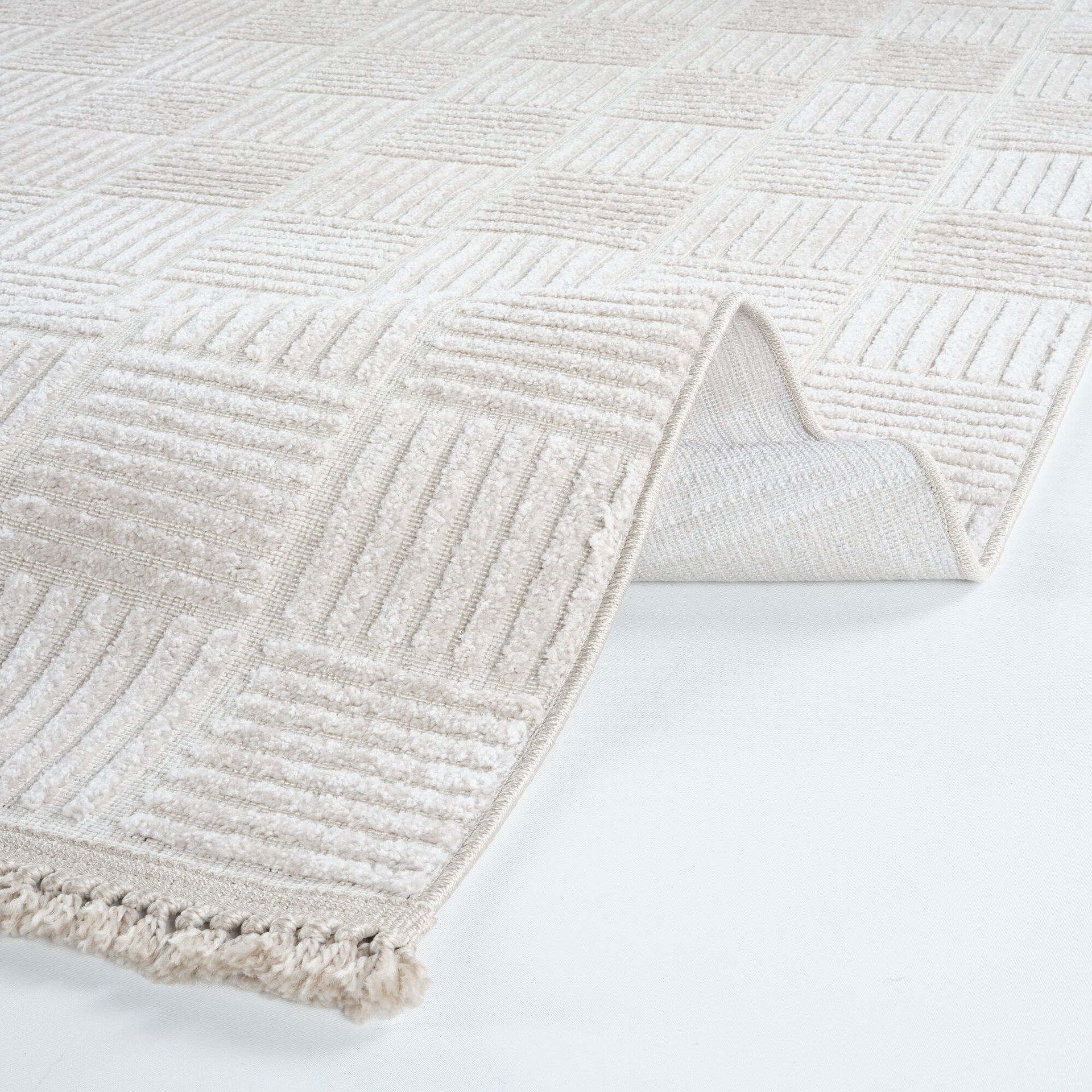 Bohem Etnik Desenli Bej İskandinav Makine Halısı Bukle Bh 04