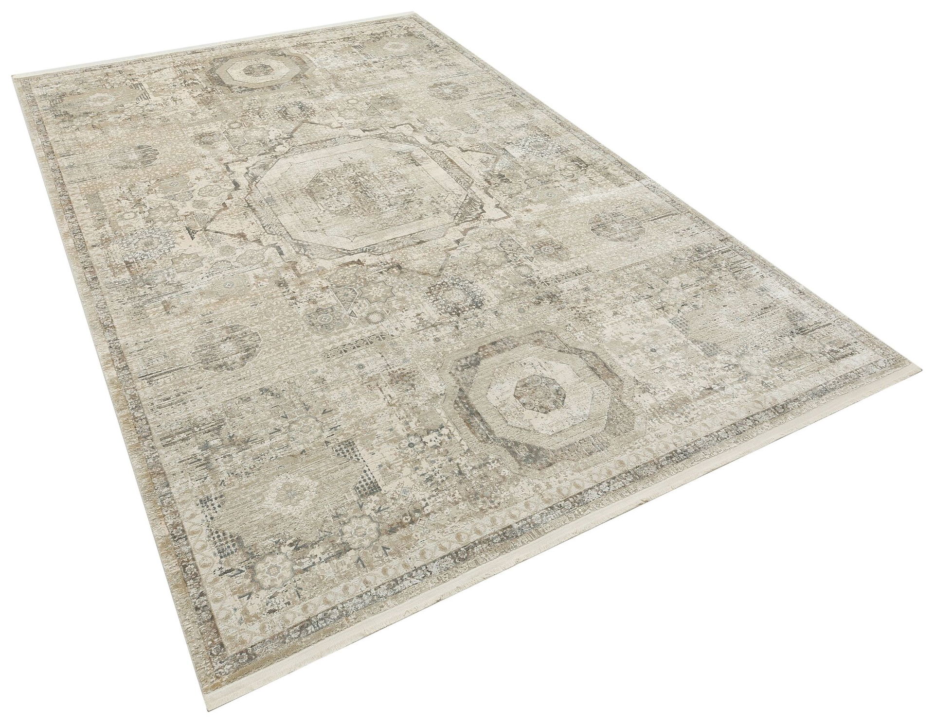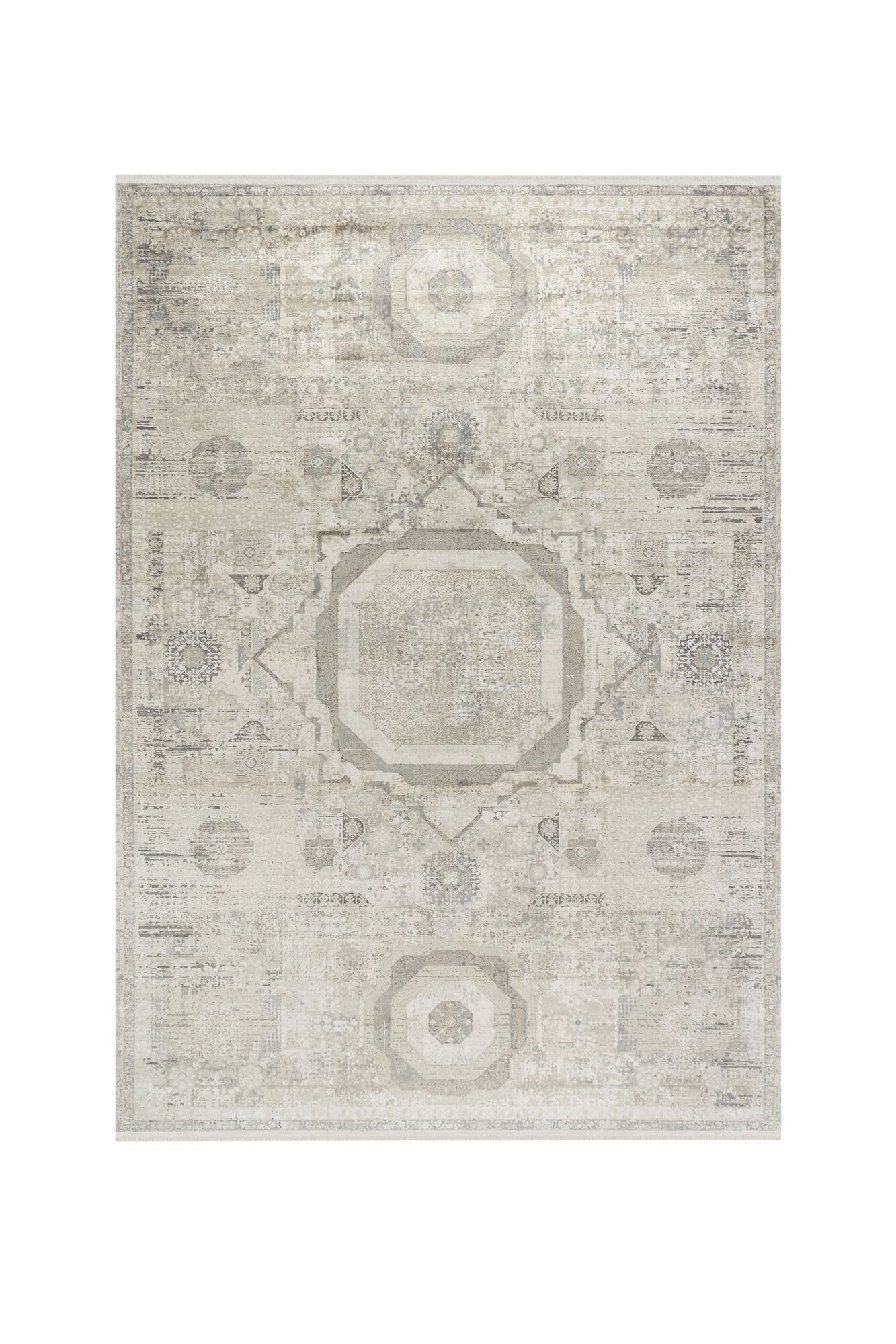 Bohem Etnik Desenli Bej İskandinav Makine Halısı Bukle Bh 04