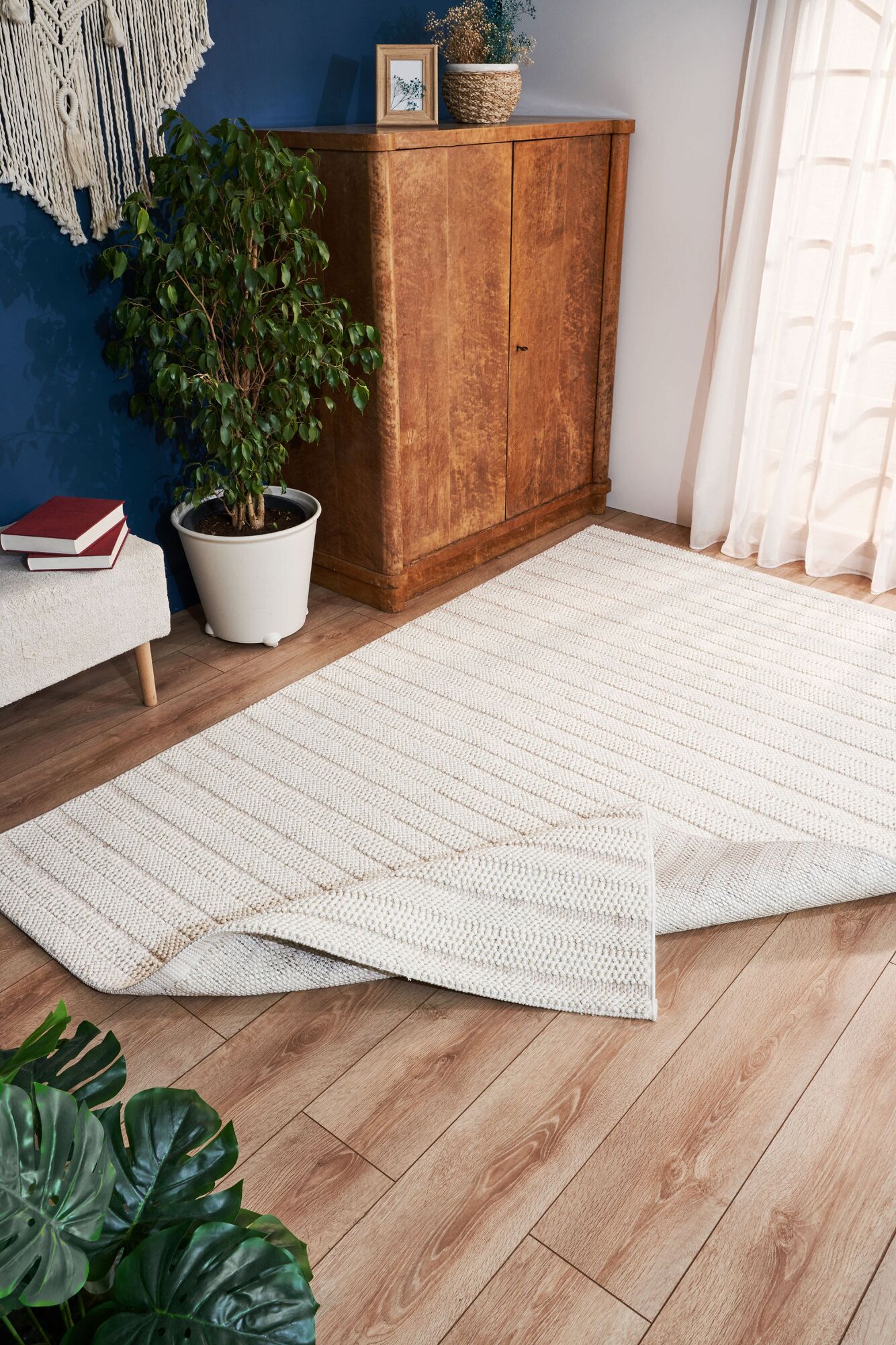 Bohem Etnik Desenli Bej İskandinav Makine Halısı Bukle Bh 04