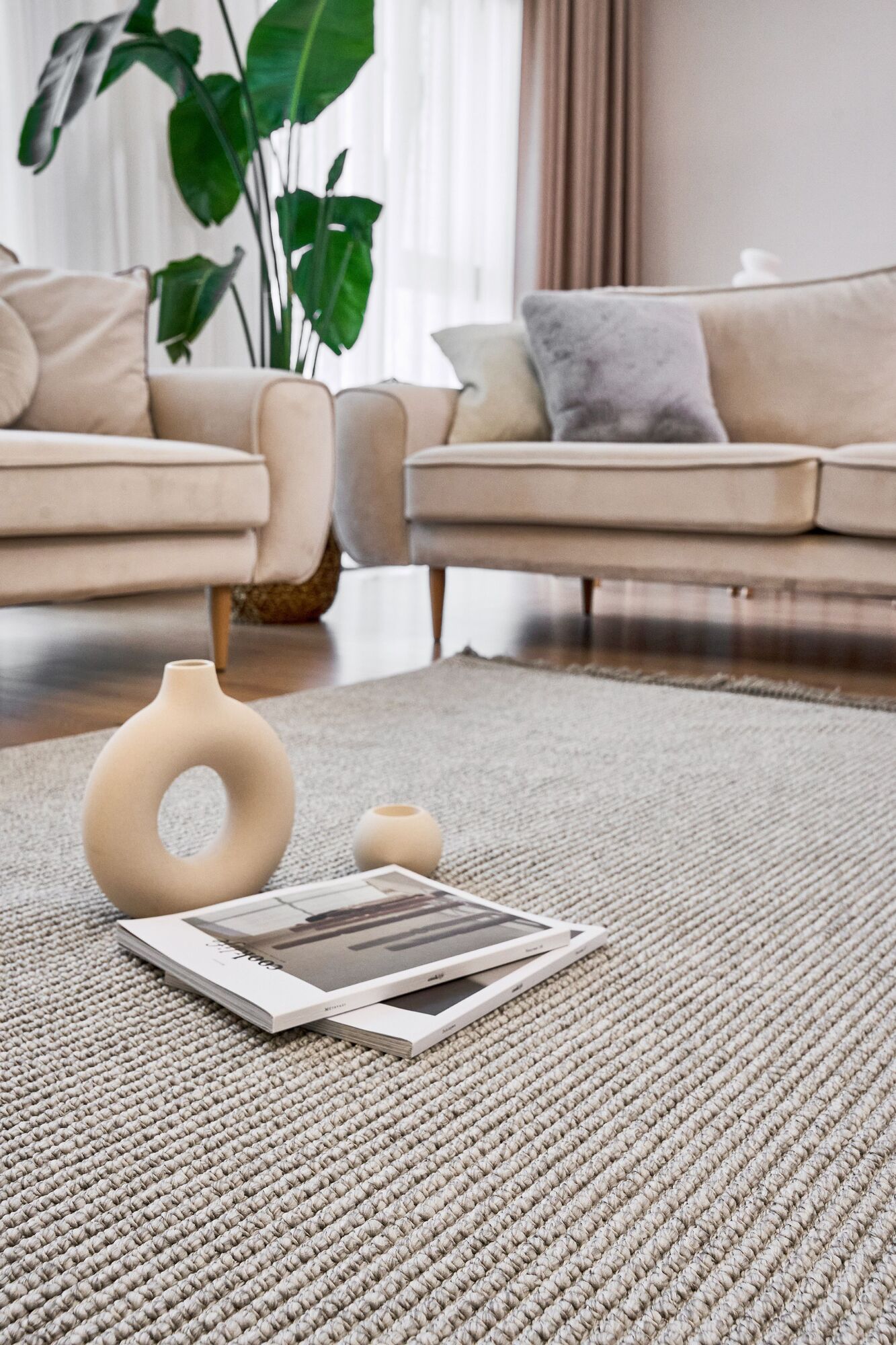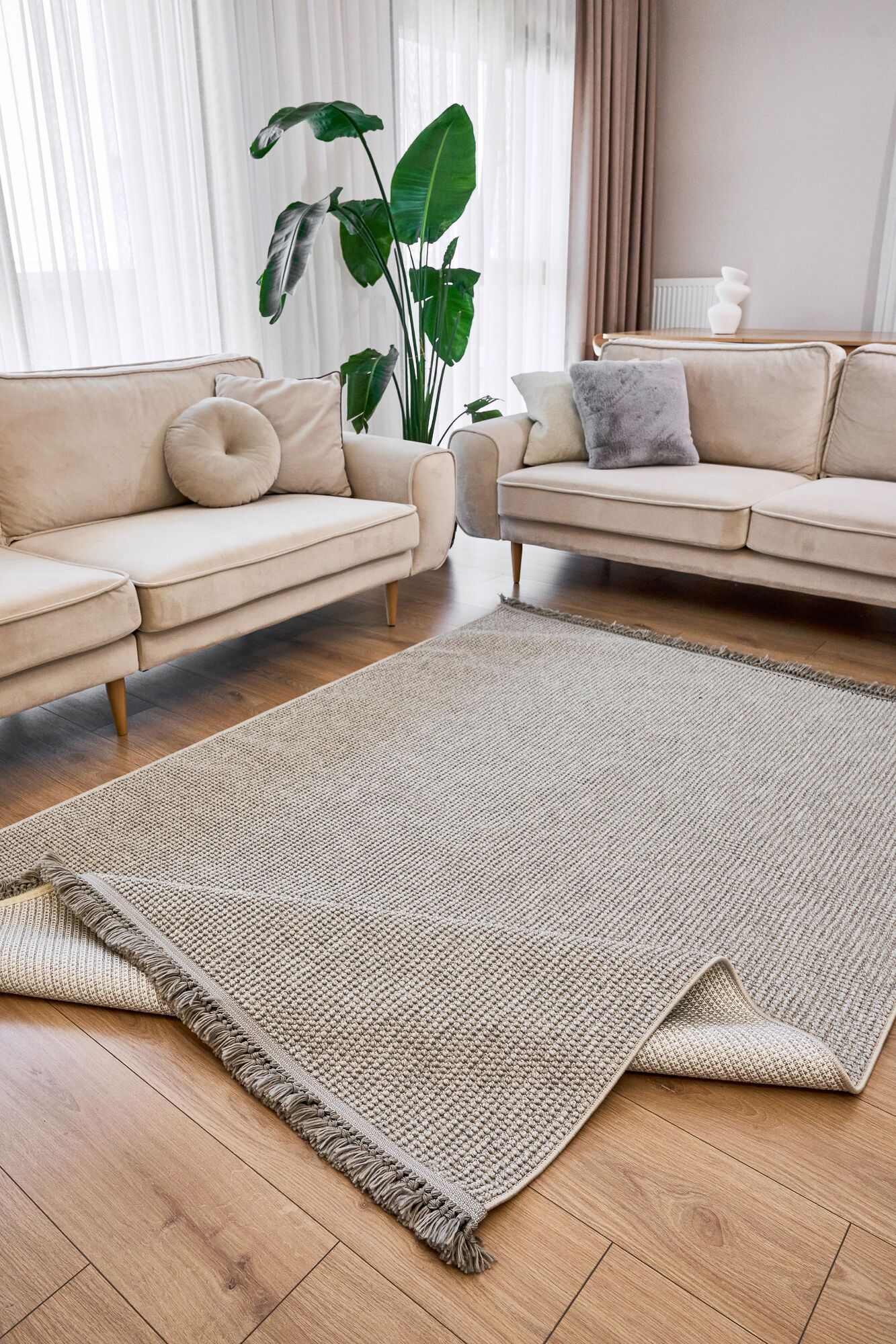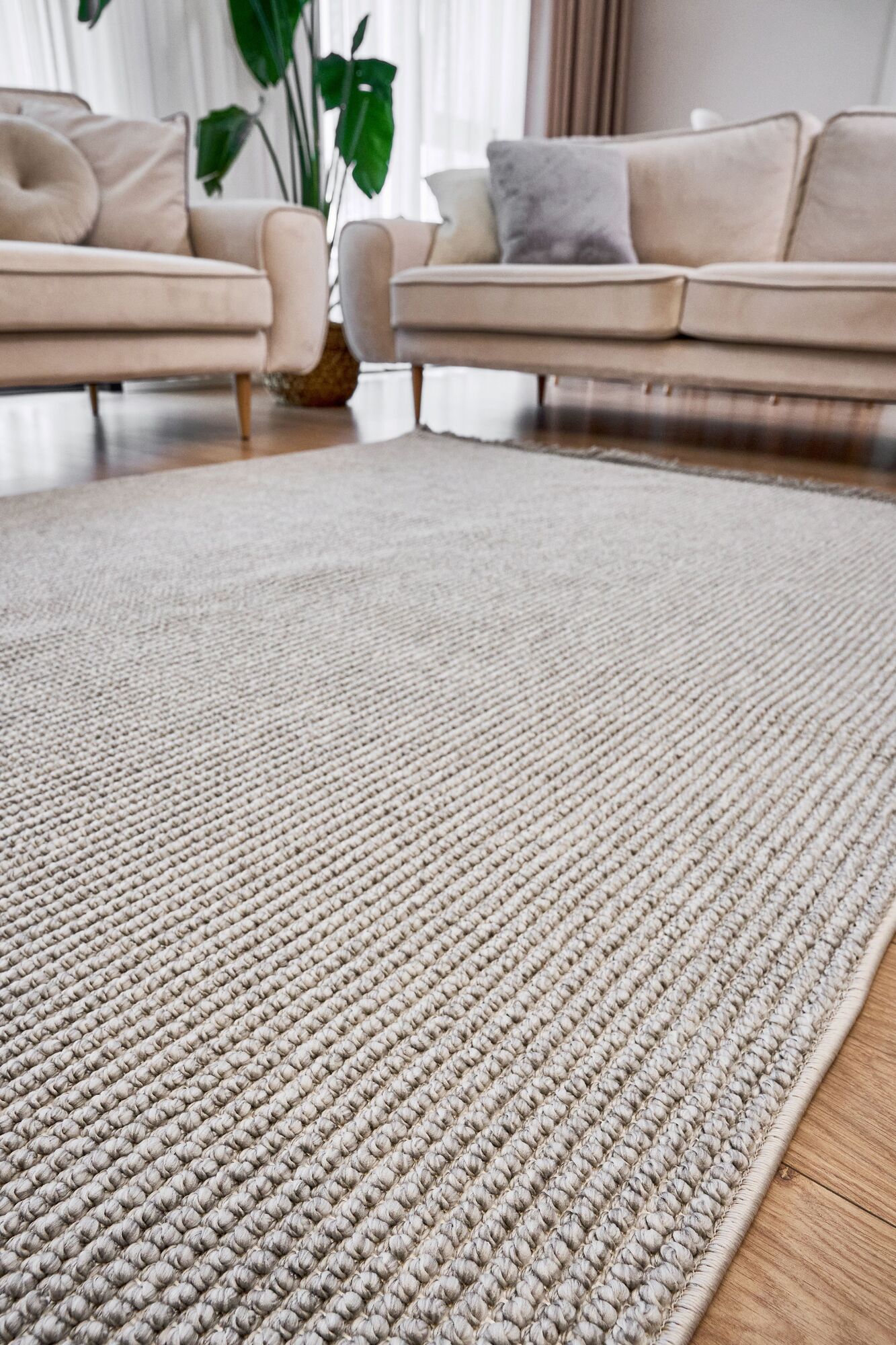 Bohem Etnik Desenli Bej İskandinav Makine Halısı Bukle Bh 04
