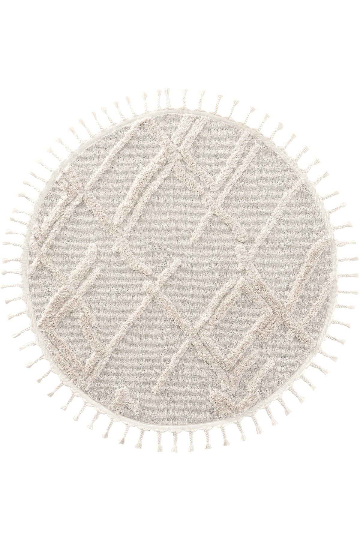 Yuvarlak Hav Toz Vermez Yumuşak Dokulu Etnik Örgü Desenlere Sahip Modern Beyaz İskandinav Halı Trz 03